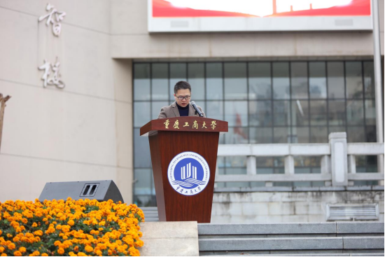 机械工程学院邓知宇同学作为学生代表身份宣读了劳动倡议书。他倡议全校师生树立“劳动最光荣”的观念。