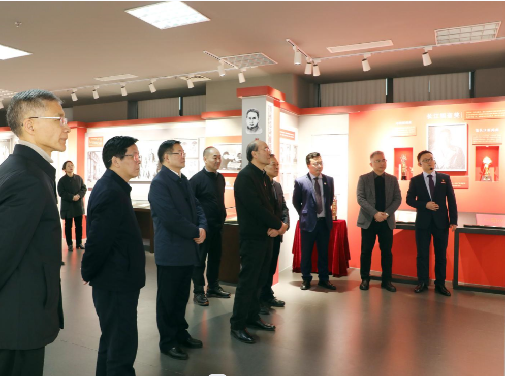 刘思扬一行调研了范长江大事记和报纸墙、范长江简介、范长江与重庆、范长江对新闻事业的贡献和长江韬奋奖等五个展览区域,通过丰富的史料照片和影像,深入了解我国无产阶级新闻事业出色的领导者、新中国新闻事业的奠基人范长江追求真理、勇于探索、为国为民、无私奉献的一生。