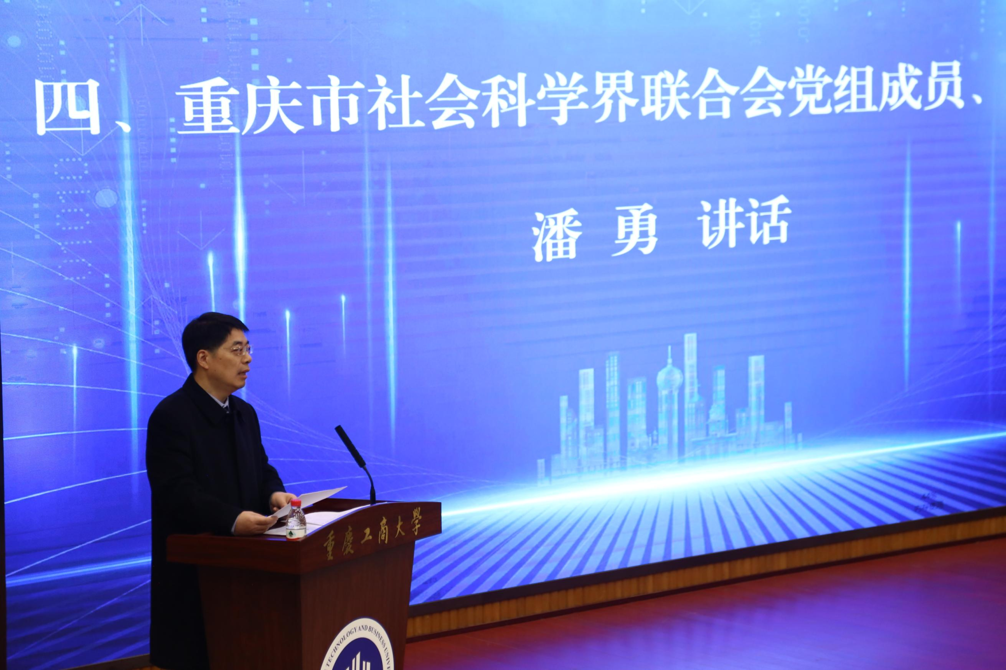 潘勇代表重庆市社科联讲话。他结合党的二十大精神和中央经济工作会议精神,深刻剖析了继续教育在建设学习型社会、学习型大国中的重大意义,充分肯定了重庆市继续教育学会成立一年多来的发展成绩,提出要用信息化、系统化、国际化思维指导行动,坚持立德树人根本任务,担当起办好人民满意教育历史责任。