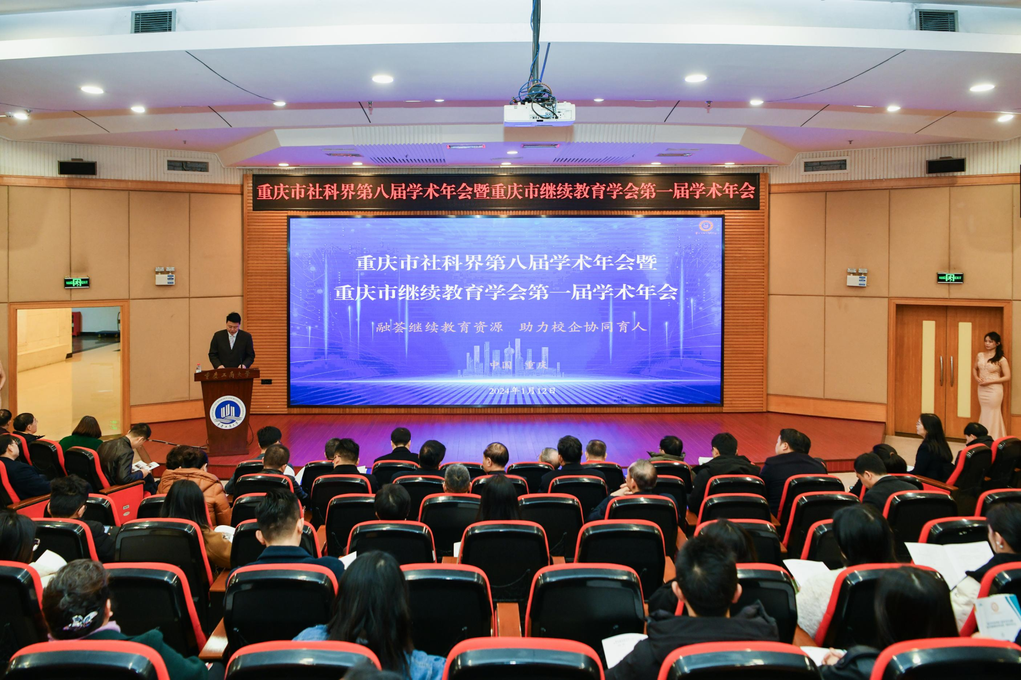 1月12日,由重庆市继续教育学会主办,8xbet体育登录承办的“重庆市社科界第八届学术年会暨重庆市继续教育学会第一届学术年会”在我校博智楼7200隆重举行。大会聚焦“融荟继续教育资源助力校企协同育人”主题,共同探讨如何整合优化继续教育资源、实现学校与企业深度对接、构建产教融合新生态。