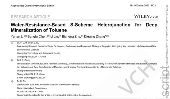 近日,我校废油资源化技术与装备教育部工程研究中心李宇涵研究员在针对油气中苯系物的高效治理方面取得了重要进展,成果“Water-Resistance-Based S-Scheme Heterojunction for Deep Mineralization of Toluene”(基于耐水性的S-方案异质结在甲苯深部矿化中的应用)以8xbet体育登录为第一署名单位在化学领域学术期刊《Angewandte Chemie International Edition》上发表(https://doi.org/10.1002/anie.202319432),标志着在“双碳”背景下废油中心在废油油气污染防治方向研究进入了新阶段。