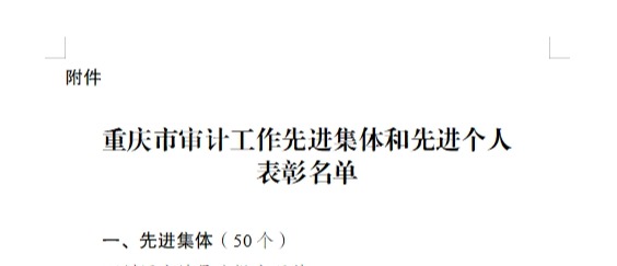 近日,重庆市人力资源和社会保障局、重庆市审计局联合发布《关于表彰重庆市审计工作先进集体和先进个人的决定》的通告,我校审计处获重庆市审计工作先进集体。