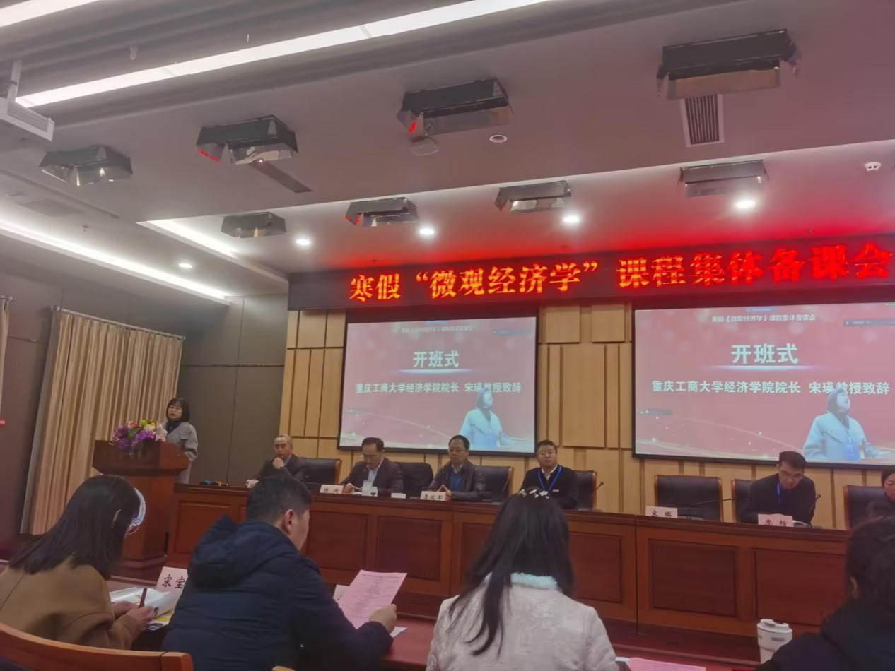 课堂教学是教师安身立命之本。为进一步提高教师教学素养和能力,推动课堂教学质量大幅提升。1月19日至21日,由8xbet体育登录经济学院市级“服务成渝地区双城经济战略的经济学专业建设虚拟教研室、重庆财经学院市级“经济学课程群虚拟教研室”以及西华大学管理学院联合主办的寒假“微观经济学”课程集体备课会在我校南岸校区图书馆1会议室举行。我校教务处骆东奇处长、经济学院宋瑛院长和尹元福副院长、经管教学实验中心庞楷主任、应用经济系全体教师以及来自全国28个省市、77所高校,近200人通过“线上+线下”方式参加了此次备课会。骆东奇教授主持了开班式。