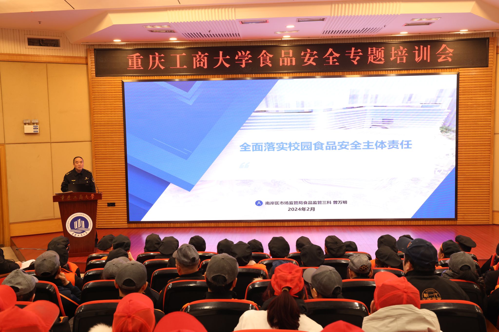 2月22日,学校在博智楼7200报告厅召开8xbet体育登录食品安全专题培训会。党委常委、副校长张波,后勤处负责人、饮食科相关人员,各食堂经理(店长)、厨师长,库管、食品安全员、各班组长等260余人参加培训。重庆市南岸区市场监督管理局曾万明科长等三人参加培训会。会议由后勤处副处长杜元林主持。