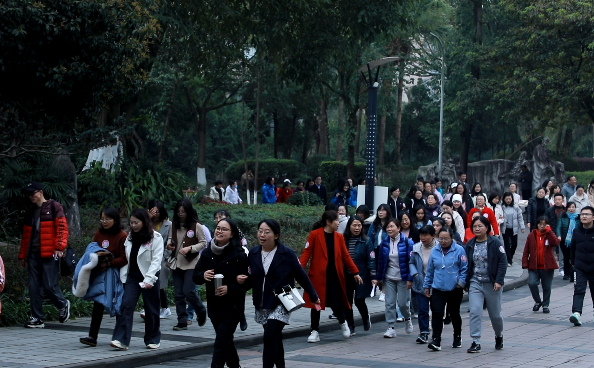 随后,曾维伦宣布,出发!号令一下,比赛正式开始。登山路上,大家热情高涨,互相鼓励,一路欢声笑语。此次活动让女职工们舒缓工作压力,又进一步增进同事之间的友谊和感情,同时也充分展现了我校女职工们积极向上、团结协作、不怕困难、勇于争先的精神风貌,让大家度过了一个有意义的节日。