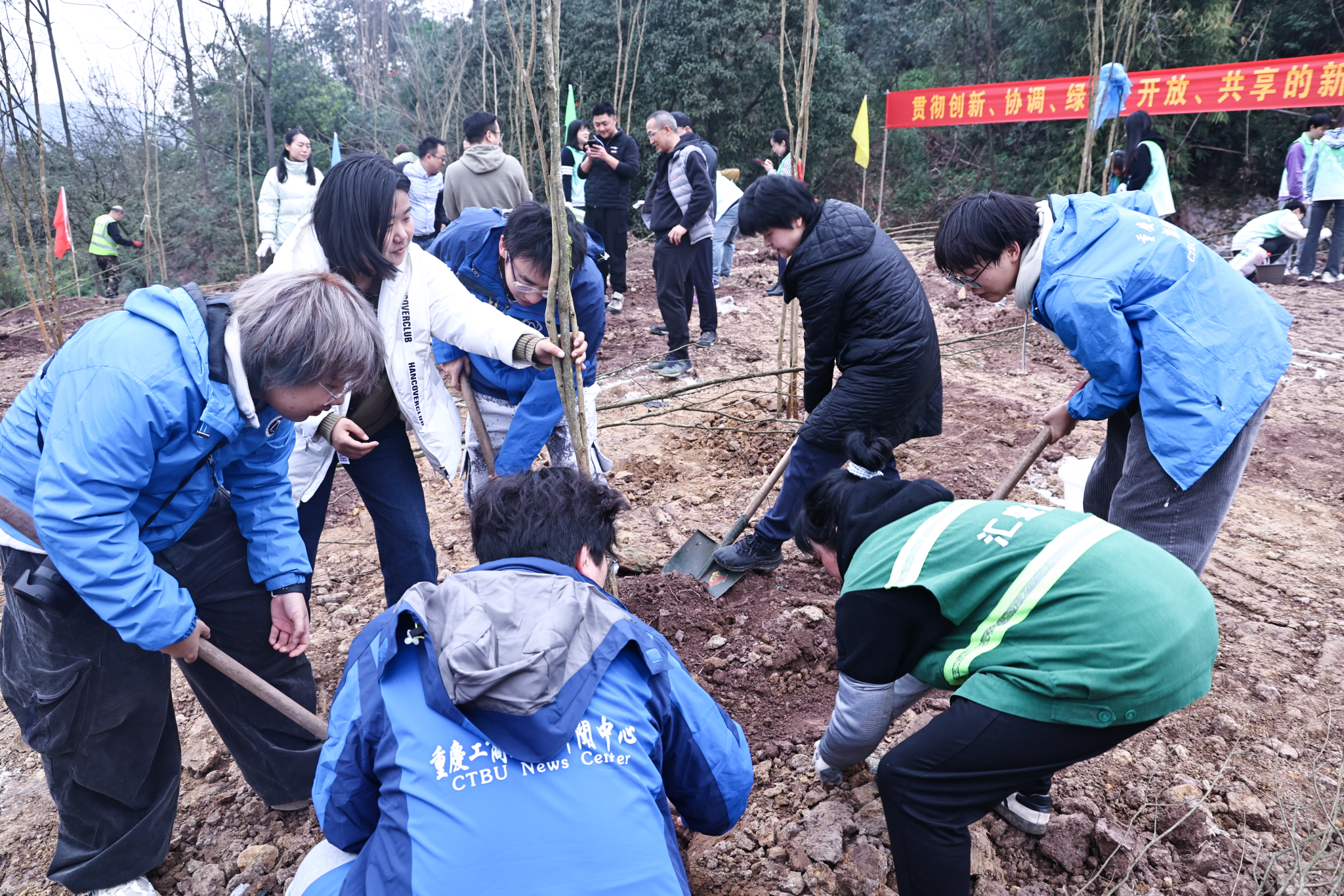 曾维伦在致辞中指出,开展此次活动是学校深入贯彻落实习近平生态文明思想,牢固树立和践行绿水青山就是金山银山发展理念的重要举措。2023年,习近平总书记在参加首都义务植树活动时强调,“当前和今后一个时期,绿色发展是我国发展的重大战略,开展全民义务植树是推进国土绿化、建设美丽中国的生动实践。”十年树木,百年树人。今天,我们在校园种下的绿植不仅寄托着师生、校友对学校的美好祝愿,也是师生、校友与学校最深情的纽带。植树造林功在当代、利在千秋。他号召大家为重庆市建设美丽中国先行区,打造人与自然和谐共生的现代化市域范例贡献重工商大人力量。