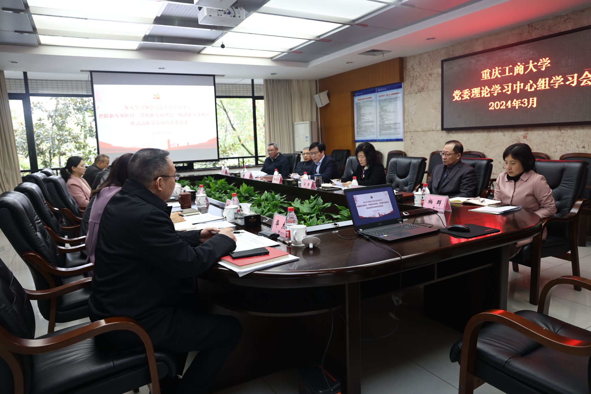 3月19日上午,我校党委理论学习中心组举行专题学习会,深入学习领会习近平总书记关于把握新发展阶段、贯彻新发展理念、构建新发展格局、推动高质量发展的重要论述,学习贯彻习近平总书记在2024年全国两会期间重要讲话精神,深刻领会习近平总书记关于因地制宜加快发展新质生产力论述的精髓要义,进一步增强坚决拥护“两个确立”、坚决做到“两个维护”的思想自觉、政治自觉、行动自觉,积极投身科教兴国战略,主动服务国家重大战略部署和重庆科技创新和人才强市战略,为贯彻新发展理念,发展新质生产力贡献智慧和力量。