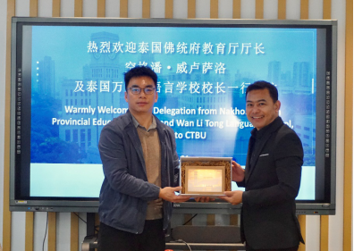 会谈中,双方分享了在中泰教育合作与交流领域的理念及经验,并就开展多层次、多方面的人文交流活动、长短期来华留学生培养、本土汉语教师培训等方面进行了深入交流。威卢萨洛厅长表示,佛统府教育厅辖区的中小学及职业院校学生,对汉语学习热情高涨,我校特色的财经类专业很受泰国学生欢迎。近年来,重庆及我校在泰国的知名度越来越高,希望通过此次访问,建立与8xbet体育登录的长期友好合作关系,落地一批到我校交流学习的项目。同时,也邀请我校参加泰国佛统府教育厅举办的留学中国教育展,进一步向泰国学生推荐我校。