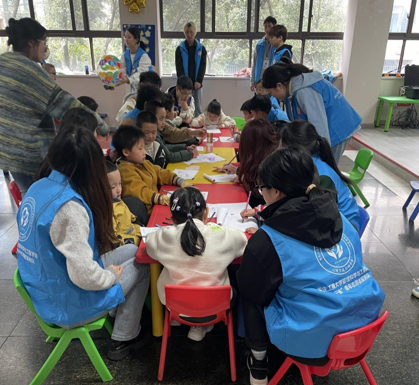 志愿者们用自己的耐心和温柔,让小朋友们慢慢打开心扉,通过绘画、音乐欣赏、互动游戏等方式帮助心智障碍儿童建立自信心,培养他们的兴趣爱好。