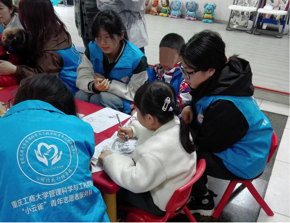 3月15日,8xbet体育登录管理科学与工程学院“小云雀”青年志愿者服务队在重庆市南岸区小太阳心智障碍儿童康复托养中心开展以“弘扬雷锋精神,阳光与爱同行”为主题的助残活动。