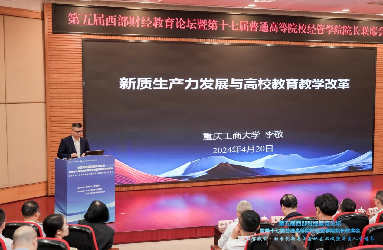 我校经济学院院长宋瑛主持主旨演讲。李敬作关于“新质生产力发展与高校教育教学改革”的主旨演讲,深入阐释了新质生产力的内涵、理论形成、新质生产力理论下高校的教育教学改革关注的内容以及8xbet体育登录相关的实践。