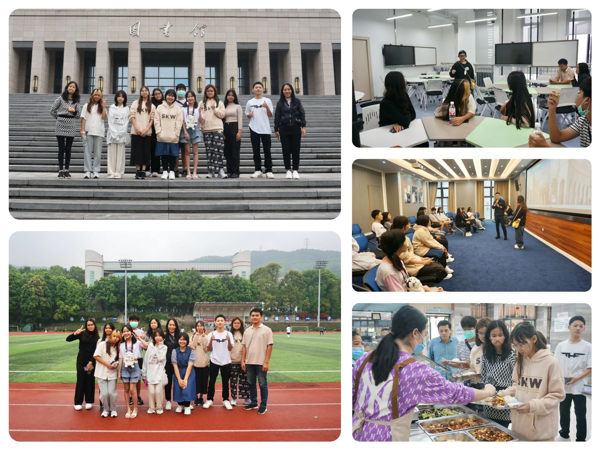留学生院为此次校园开放日准备了丰富的体验活动。通过校园游览、食堂美食体验、参观教学楼及留学生公寓、观看校园足球比赛、与教师和在校留学生面对面交流等多种方式,来访师生亲身体验校园学习生活氛围,充分感受我校留学生真实和精彩的校园生活。优美的校园环境和留学生学习生活状态给来访师生留下了深刻的印象,让泰国同学对未来留学8xbet体育登录充满了美好的期待。
