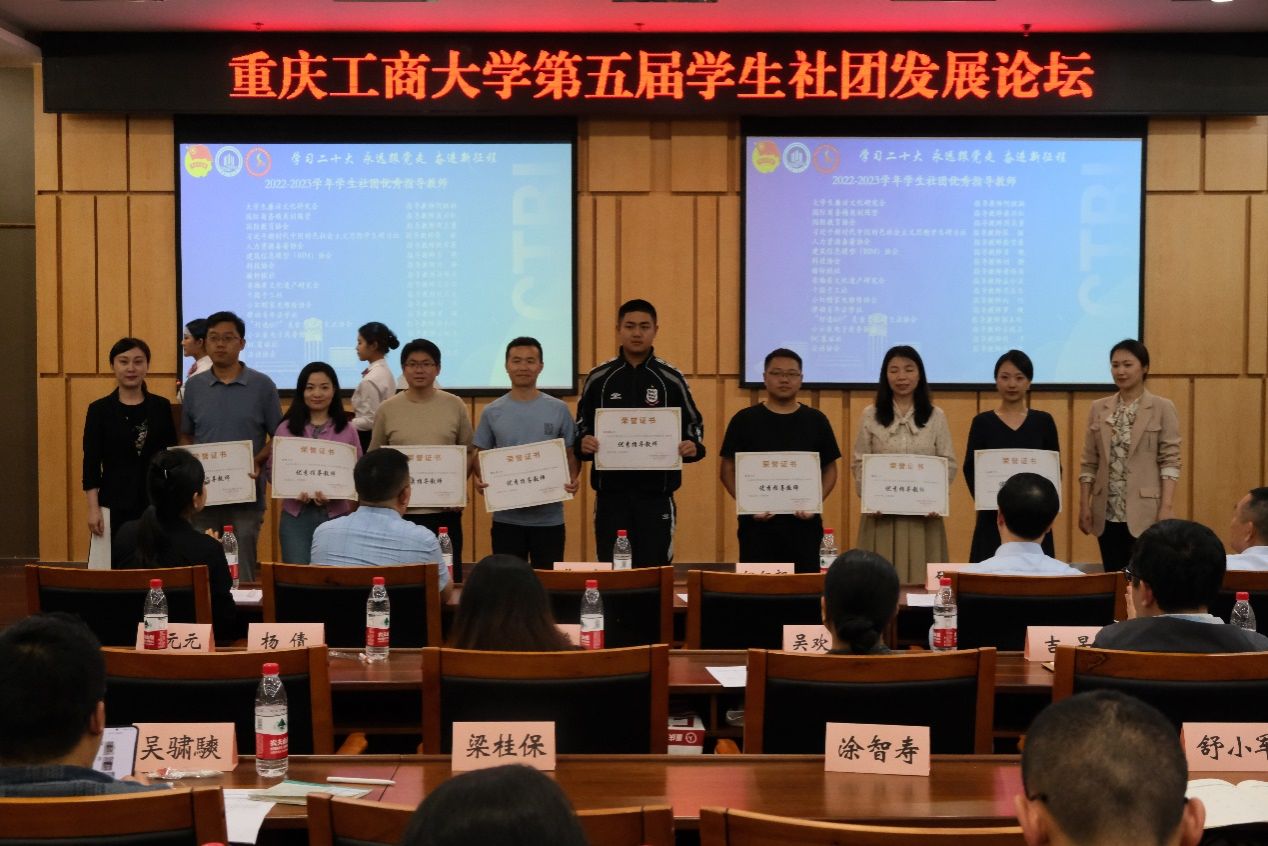 论坛围绕严把学生社团发展方向、把握学生社团育人规律、加强学生社团内部建设,提升社团活动育人成效,为学校学生社团发展提供交流互鉴的平台。社团指导单位代表交流发言环节,工商管理学院党委副书记程亚、艺术学院和现代国际设计艺术学院党委副书记王婷、管理科学与工程学院党委副书记赵钰鑫、文学与新闻学院党委副书记程元元、国际商学院党委副书记杨倩聚焦如何推进社团管理体系,构建长效管理机制,发挥教师能动作用,探索合力育人模式等方面开展经验交流。社团指导教师代表经验分享环节,机械工程学院科技协会指导教师刘静、马克思主义学院习近平新时代中国特色社会主义思想学生研习社指导教师张丽、工商管理学院人力资源春蕾协会指导教师熊雪原、法学与社会学学院大学生廉洁文化研究会指导教师何祖润、环境与资源学院环境科技协会指导教师王南妮从社团组织架构、高效运转、文化传承、活动创新、育人成效等多方面、多角度进行深入分享探讨,传递有亮点、有深度的发展经验及思路。社团会长代表主题分享环节,管理科学与工程学院建筑信息模型(BIM)协会会长刘涛、人工智能学院小红帽家电维修协会会长陈利秋、会计学院财会研究会韩慧怡、党委学工部(党委武装部)国防教育协会会长陈鑫、经济管理实验教学中心大学生创新创业联盟会长张春雪从创新社团管理模式、打造社团品牌项目等方面进行主题分享。会上,与会领导为2022-2023学年学生社团优秀指导教师、2023-2024学年校级“活力社团”颁发荣誉证书。