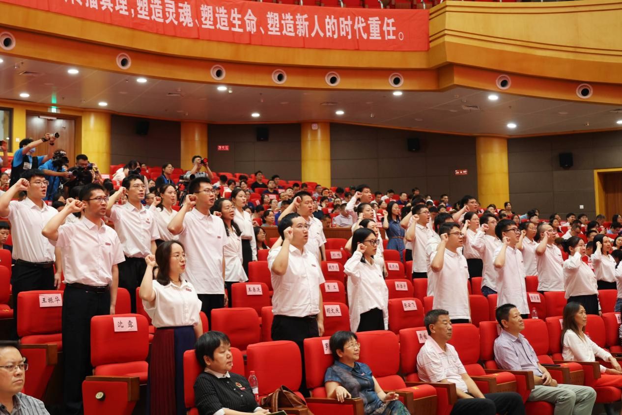 大会还举行了新教师宣誓仪式,人工智能学院夏雪老师带领新教师代表庄严宣誓,为教育发展、国家繁荣和民族振兴努力奋斗!