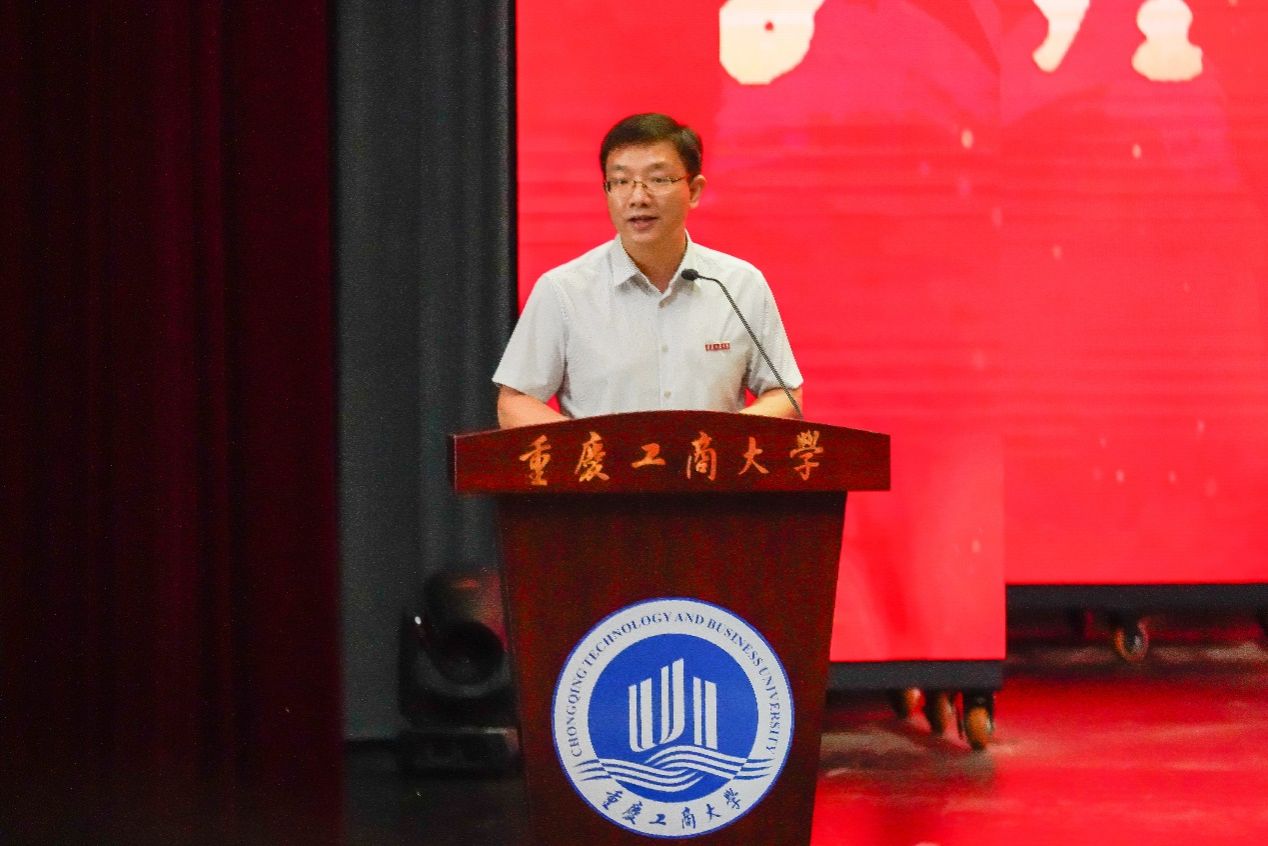 工商管理学院2022级王紫妍同学作为学生代表发言。她向全体老师致以节日祝福。她表示,将在老师的关心和引领下,仰望星空,脚踏实地,勤学善思,求真笃行,努力到祖国需要的地方去建功立业。