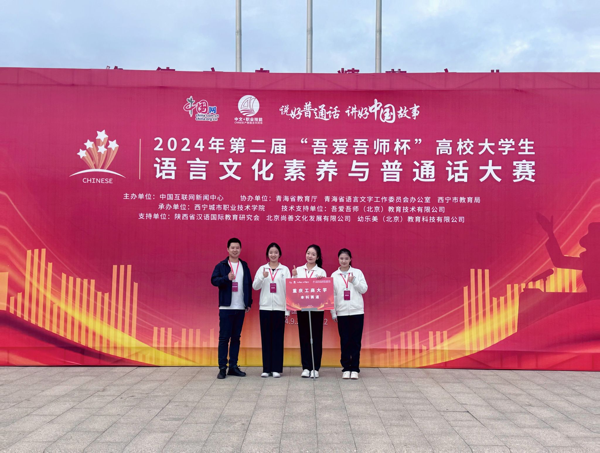9月20日-22日,由中国互联网新闻中心主办,青海省教育厅、青海省语言文字工作委员会办公室、西宁市教育局协办的第二届“吾爱吾师杯”高校大学生语言文化素养与普通话大赛总决赛在西宁城市职业技术学院举行。我校文学与新闻学院陈沄玥(2023级传播学)、魏心悦(2021级汉文)、陈毅(2023级新闻学)三位同学组队代表8xbet体育登录参赛,获得(本科组)“团体一等奖”,李琦老师获“优秀指导教师”。