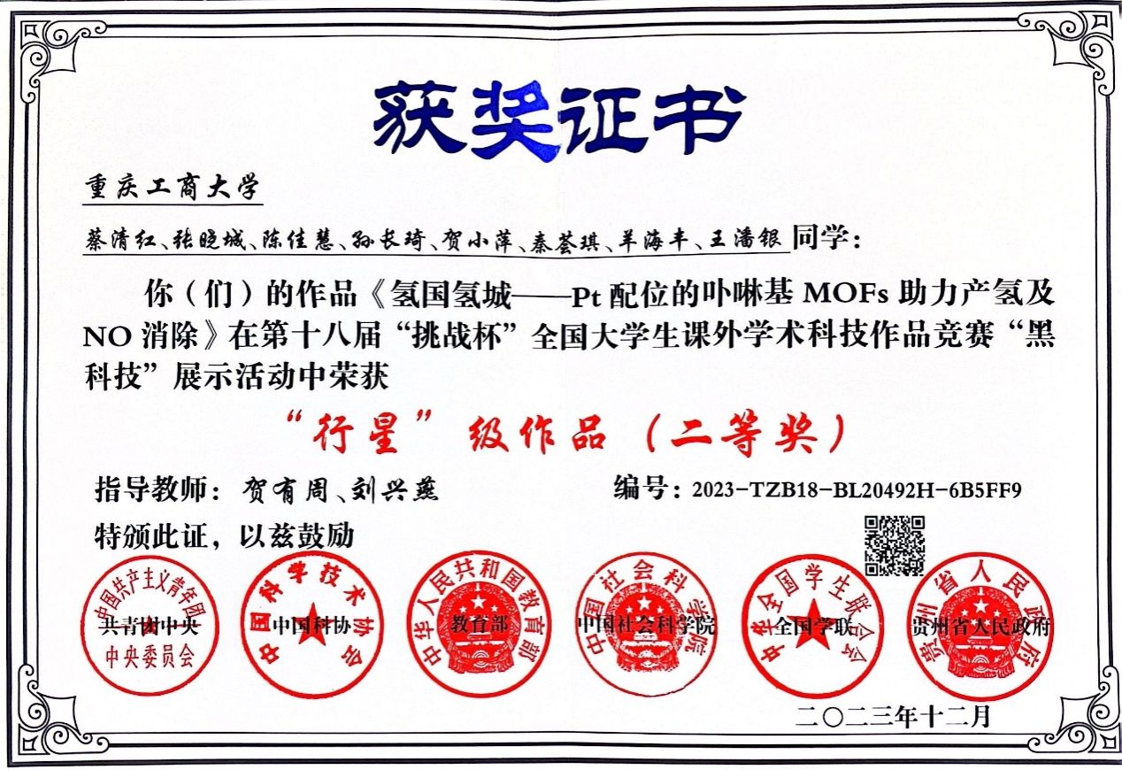 第十八届“挑战杯”全国大学生课外学术科技作品竞赛全国二等奖