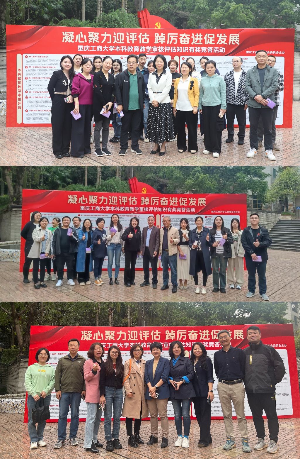 此次知识竞答活动于10月28日至11月5日在南岸校区怡园广场开展,旨在通过寓教于乐、融学于趣的方式,促进全校师生深入掌握本科教育教学审核评估相关知识,进一步加深对本轮审核评估重要意义、丰富内涵、工作要求与学校历史沿革、办学定位、培养目标、育人成果的理解认识。依据《8xbet体育登录本科教育教学审核评估学习手册》,校工会精心设计了包含单选题、多选题、判断题、问答题等多种题型的竞答题库,通过智慧工会平台和问卷星对师生进行随机抽题考核,全面检验和提升师生对审核评估知识的知晓度、熟悉度。