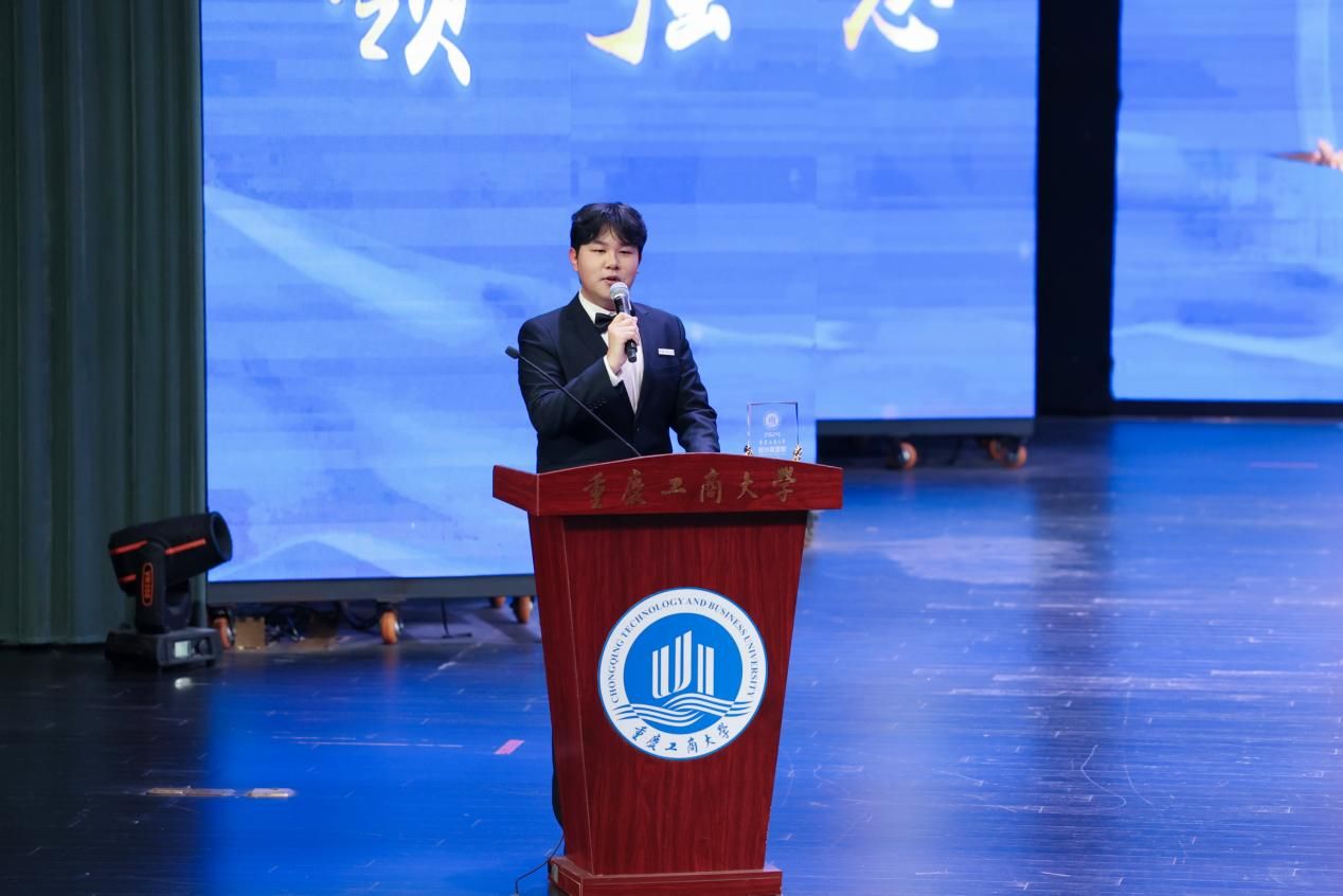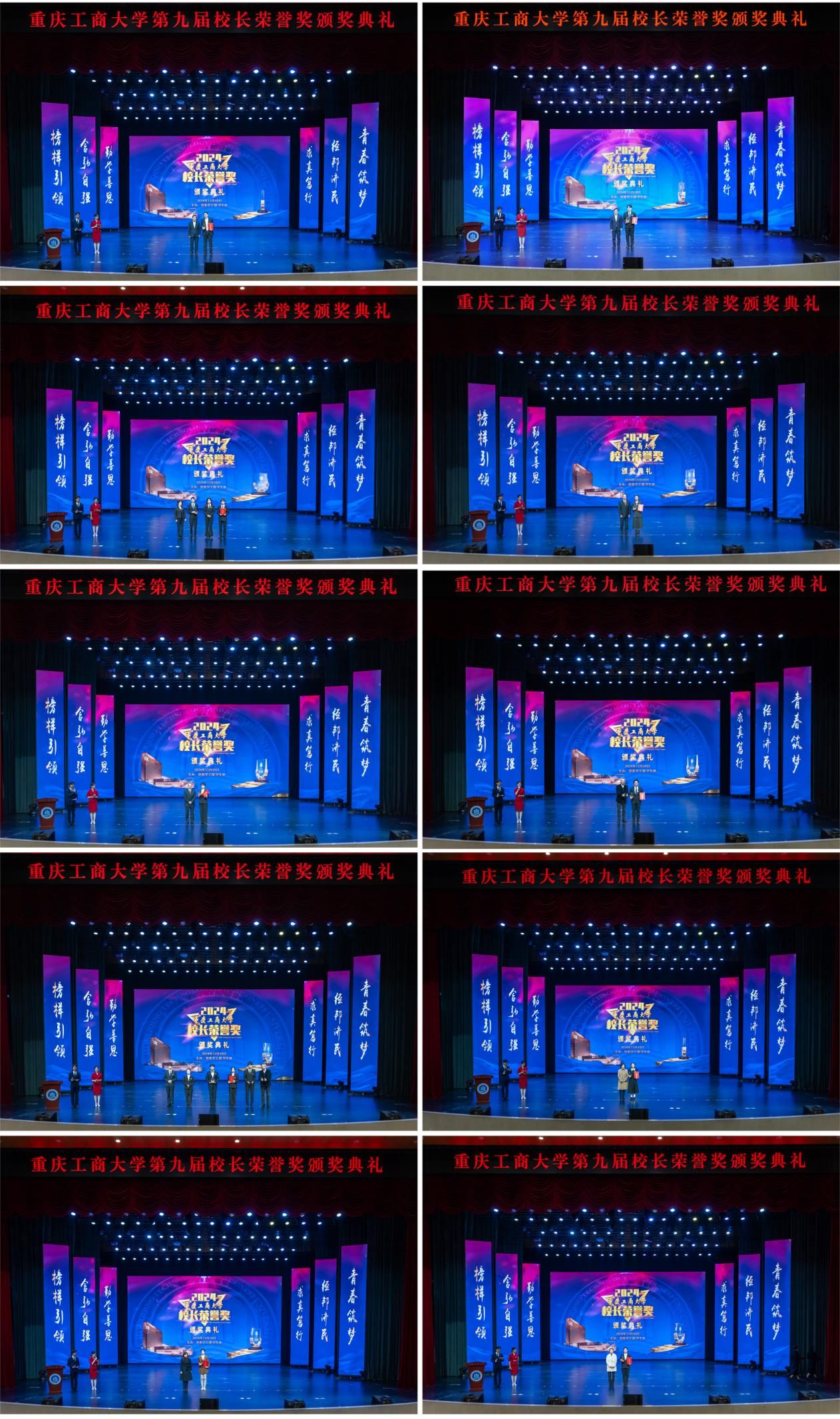 典礼以视频的形式介绍了校长荣誉奖的设立目的及其评选情况。此次“校长荣誉奖”评选经个人自荐与学院推荐相结合,学生处与研究生院复核,评审工作组初评,全面考察和复审答辩等环节,最终评选出了8位学生个人和2个团队。国际商学院2021级金融学专业陈彦甫,机械工程学院汽车人协会,人工智能学院2022级软件工程专业硕士研究生章勤,工商管理学院2021级工商管理专业周安宁,会计学院2021级智能会计班张婧,现代国际设计艺术学院2021级服装与服饰设计专业陈韵至,法学与社会学学院2021级法学专业张炜嘉,管理科学与工程学院BIM 协会,外国语学院2021级法语专业祖诗淇,成渝地区双城经济圈建设研究院2022级产业经济学专业博士研究生宋泓锑等脱颖而出,接过由校领导亲自颁发的、代表我校学子校内最高荣誉的奖项。