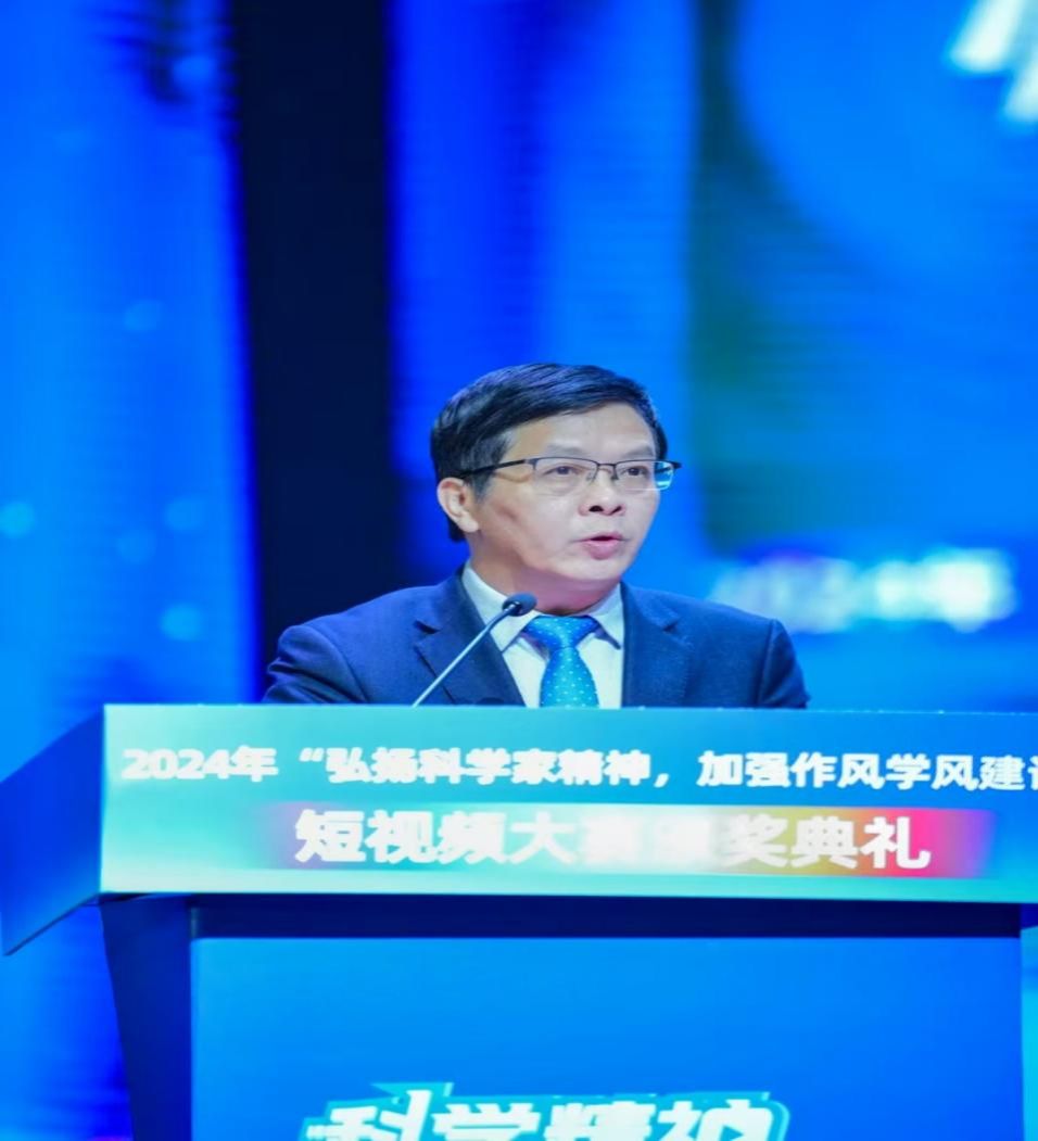 曾维伦代表学校致辞,祝贺短视频大赛颁奖典礼取得圆满成功,并表示我校将以科学家精神教育人、培养人、滋润人、成就人,让广大师生从内心树立科学家精神,以科学家精神自我审视,以科学家精神自勉,在学术学业中自觉践行,努力培育能够担当民族复兴重任的时代新人。