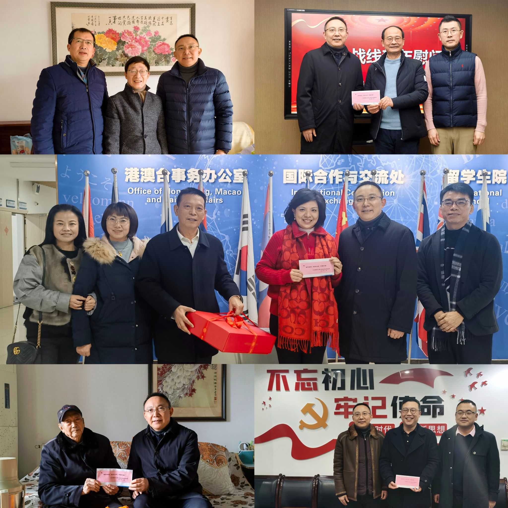 金蛇献瑞贺新春,同心奋进谱新篇。在2025新春佳节即将到来前夕,学校党委书记曾维伦,党委副书记宋豫,党委常委、统战部部长华杰,部分二级党组织书记、部门负责人和学校各民主党派基层组织、统战团体负责人一起,开展了统一战线新春走访慰问活动,为学校统战代表人士送去学校的关心关爱,并对他们及其家人致以节日问候和新春祝福。