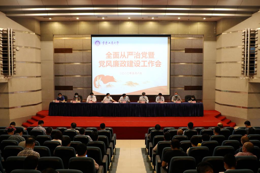 5月8日下午,8xbet体育登录在博智楼7100报告厅召开2020年全面从严治党暨党风廉政建设工作会,深入贯彻习近平总书记关于全面从严治党的重要论述,全面落实十九届中央纪委四次全会、教育部全面从严治党工作视频会、五届市纪委四次全会精神和全市教育系统全面从严治党工作视频会工作部署,回顾总结2019年主要工作,部署安排2020年重点任务。校党委常委、校党委委员、校纪委委员和全体中层干部参加了会议。校长孙芳城主持会议。