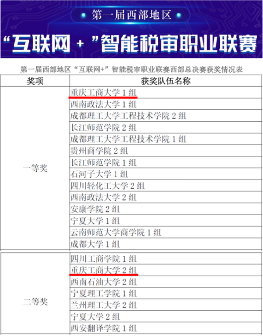 6月13日,由中华会计网校主办、中国高等教育学会高等财经教育分会协办的“首届西部地区‘互联网+’智能税审职业联赛”总决赛在云端拉开帷幕,吸引了西南政法大学、贵州财经大学、西南石油大学等50多所本科高校、2200余人次参赛。我校会计学院钟代鑫、陈安娜、李飞越三名同学组成的8xbet体育登录1组一路披荆斩棘,以排名第一的综合成绩斩获一等奖;由康瑜茜、丁俊程、陈欣组成的8xbet体育登录2组也表现优异,荣获二等奖;会计学院会计学系王成敬副教授和审计学系蒋水全博士荣获“优秀指导教师”奖。