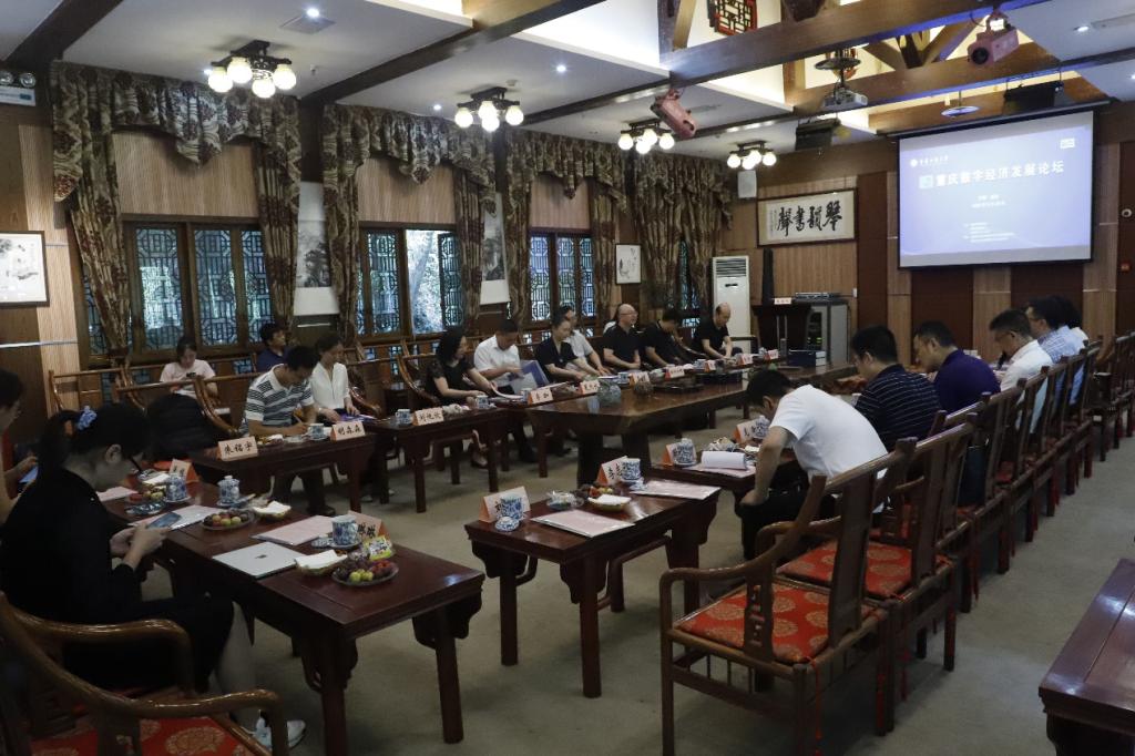 8月28日,重庆数字经济发展论坛在我校南山书院问松厅顺利开幕。本次论坛由重庆市委网信办、8xbet体育登录、新服务30人论坛主办,我校管理科学与工程学院和重庆现代商贸物流与供应链协同创新中心承办。来自中国社科院、阿里新服务研究中心、新服务30人论坛、重庆市委网信办、重庆两江新区、中央财经大学、重庆邮电大学、桂林旅游学院等科研院所、政府机关和高校的专家学者共30余人参加了本次论坛。论坛由我校管理科学与工程学院院长黄钟仪主持。