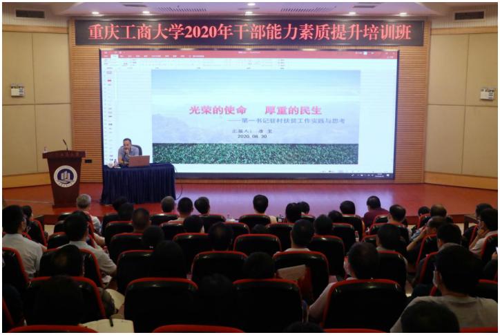8月30日下午,学校干部能力素质提升培训班第四场专题讲座:“决战扶贫攻坚——扶贫干部心得体会交流会”在博智楼7200学术报告厅举办,我校派驻彭水县的四名扶贫干部分享了他们在脱贫攻坚一线的工作情况和心得体会。校领导、中层干部、专职组织员、职能部门、教辅单位正科级干部参加了交流会。会议由校党委副书记宋豫主持。