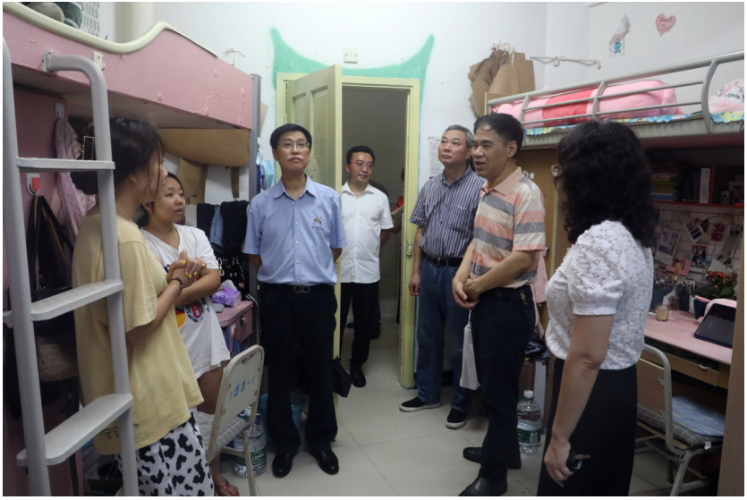 为确保新学期各项工作顺利开展,9月2日下午,党委书记李志雄,副校长陈兴述、李国军,学生处、后勤处等相关职能部门在艺术学院、现代国际设计艺术学院党政班子陪同下检查兰花湖片区开学准备工作情况。