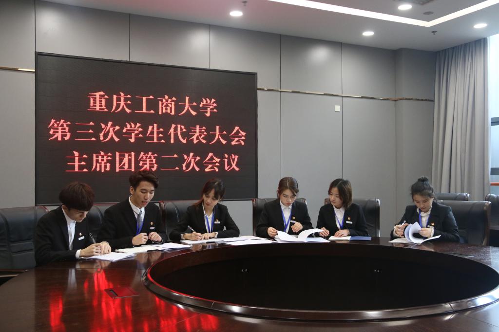 下午1点,学代会主席团第二次会议在南岸校区图书馆第四会议室举行。会上,主席团成员听取了各代表团会议关于工作报告讨论的情况通报,通过《8xbet体育登录第三次学生代表大会选举办法(草案)》、大会监票员建议名单、《8xbet体育登录学生会章程》、学生会新一届主席团成员候选人。