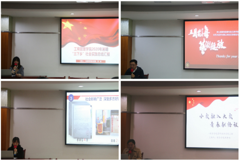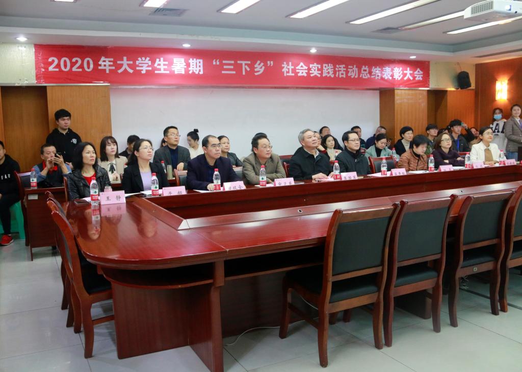 与会人员一起观看了2020年暑期“三下乡”社会实践活动集锦视频,回顾了各实践团队暑期“三下乡”的精彩瞬间。校团委副书记胡婧婷对我校2020年大学生暑期“三下乡”社会实践主要工作向与会人员做了汇报。各学院分团委负责人就2020年暑期“三下乡”社会实践特色亮点工作和实践成果进行了PPT汇报,展示了各学院实践团队开展的主要情况和取得的成果。评委们结合各学院社会实践工作开展的具体实际情况,进行了评分。校团委书记杨娟宣读了《关于表彰2020年大学生暑期“三下乡”社会实践活动先进集体和个人的决定》。