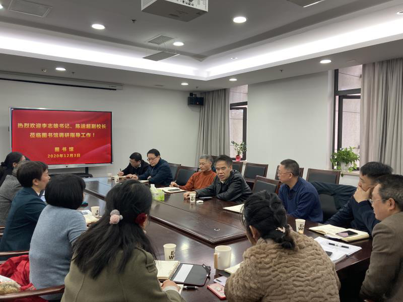 李志雄认真听取了大家的发言,对图书馆取得的成绩表示充分肯定。他谈到,此次调研有三个层面的意义:一是详细了解图书馆的工作情况,在学校“十四五”规划的编制中充分考虑到图书馆在学校发展中所起的重要作用;二是将图书馆建设纳入学校发展的整体规划,及时发现短板,有效解决问题,利用好学校各种资源;三是针对目前面临的具体困难,有关职能部门要积极给予支持,主动配合相关工作的开展。李志雄强调,新常态下的图书馆工作,领导干部要有担当,要善作为,切实推动图书馆的建设,更好地服务学校发展大局。