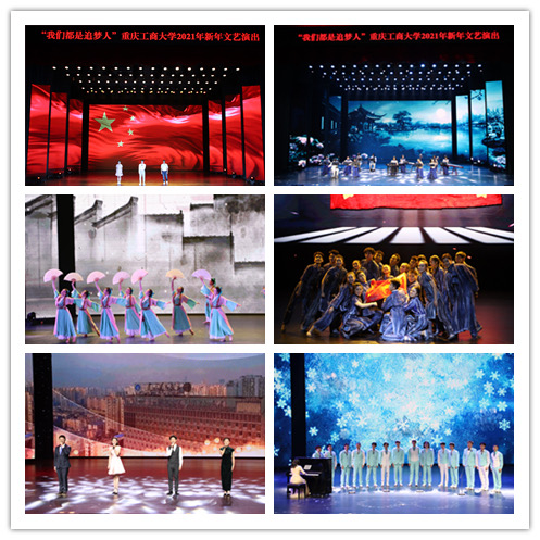 12月23日晚,“我们都是追梦人”8xbet体育登录2021年新年文艺演出在南岸校区剧场隆重举行。校党委书记李志雄、校长孙芳城、校党委副书记宋豫、副校长李国军,党委组织部、宣传部、学生工作部、研究生工作部、各教学学院负责人,教师代表、学生代表及校友代表等观看了演出。
