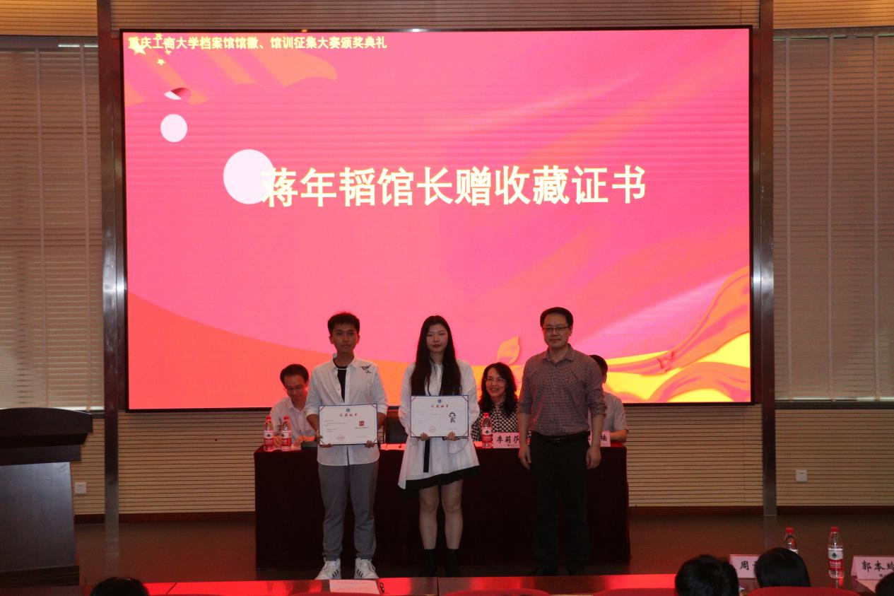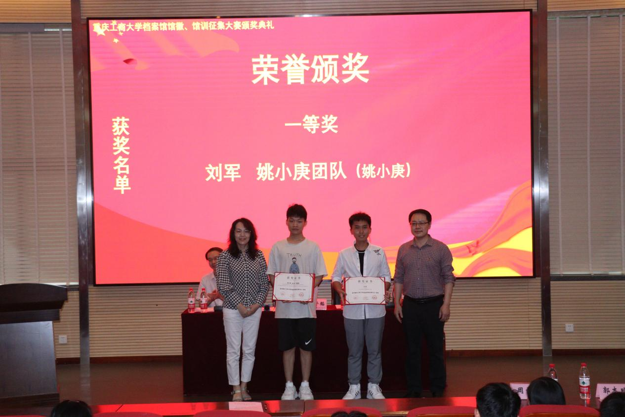 5月20日中午,由我校档案馆、艺术学院、创新创业学院共同举办的8xbet体育登录档案馆馆徽、馆训征集大赛颁奖典礼在兰花湖片区报告厅成功举行。档案馆馆长蒋年韬、艺术学院党委书记李莉莎、档案馆副馆长郭楠、艺术学院专职组织委员冉涛、教务处副处长胡卫军、艺术学院学工办主任郭本玲、档案馆办公室主任周雪玉以及获奖学生和创享设计师团队的同学参加了此次颁奖典礼。