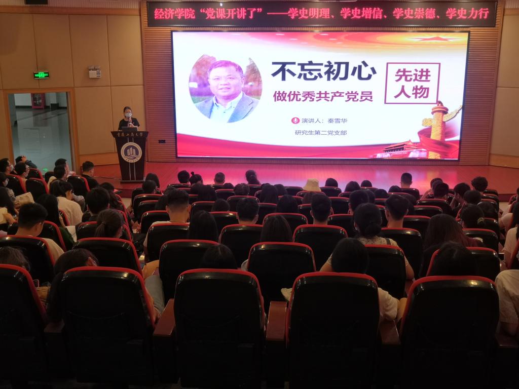 经济学院党委自3月启动党史学习教育活动以来,在学院教工、学生党支部中全面开展党史学习教育,学院党委书记李自维、学院党委委员、副院长朱沙、学院党委委员、专职组织员雷菁、4名教工支部书记、4名支部委员先后讲授专题党课,并邀请重庆市党史研究室南方局研究室副主任黎余为全院党员授课。