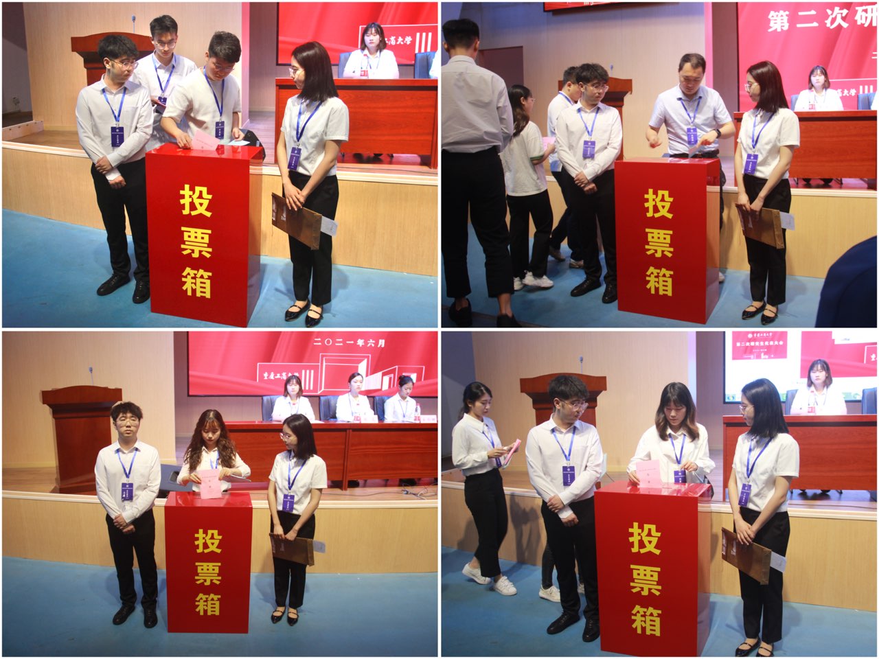 第二次全体会议在110100报告厅举行。会上,通过了《8xbet体育登录第二次研究生代表大会选举办法》和研代会总监票员、监票员、总计票员、计票员名单。随后,选举产生8xbet体育登录学生会新一届主席团成员及研代会常任代表会议成员。