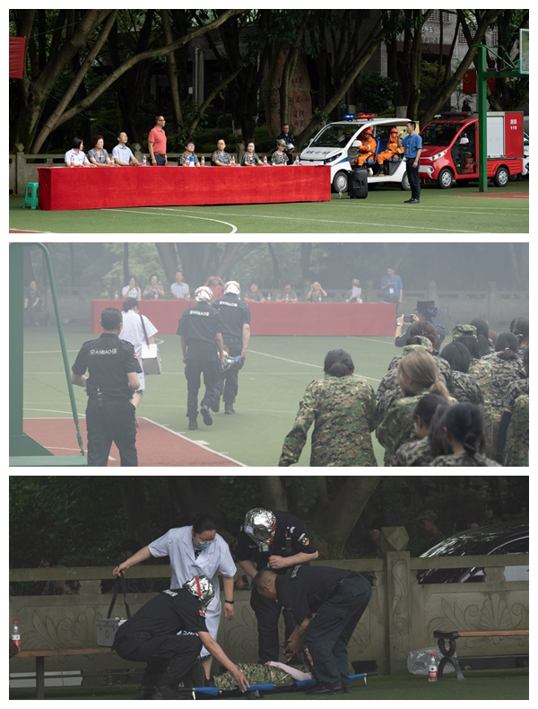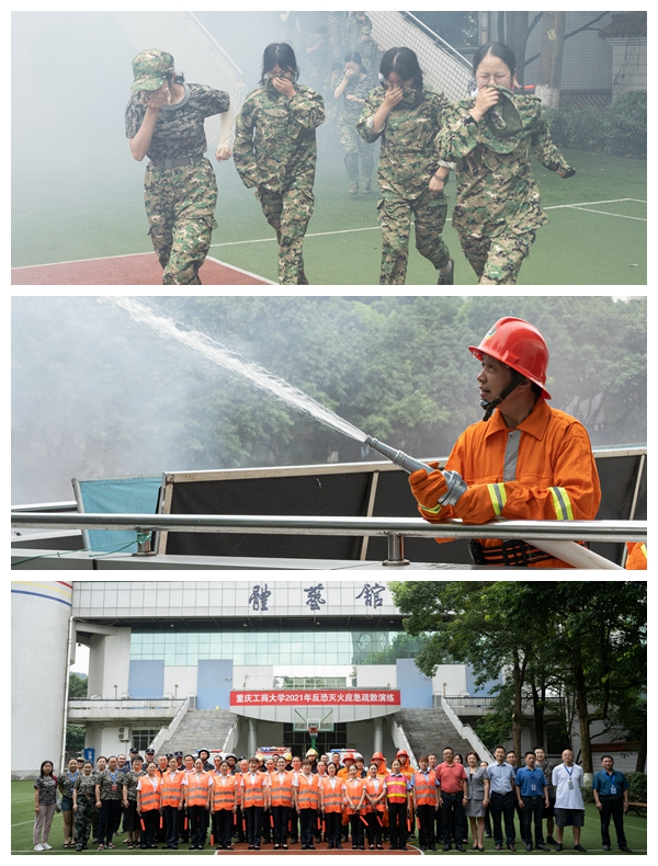 为了进一步普及安全知识,增强安全意识,提高自防自救能力,检验相关部门处置突发事件的能力,提升学校安全管理水平,7月9日上午,党委保卫部(保卫处)、党委学工部(学生处)在学校体艺馆联合举行了8xbet体育登录2021年反恐灭火应急疏散演练,部分正在军训的学生、军训教官和老师、安保队员、平安校园志愿者、保卫干部、物业管理人员和校医院医务人员共计3300余人参加了演练。
