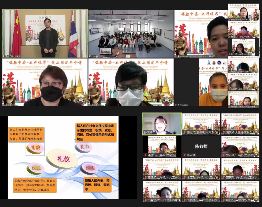 近日,我校与泰国乐得纳可信皇家理工大学合作共建的海外语言文化中心举办了“体验中泰•大开眼界”线上国际冬令营活动,中泰两校80余名师生在“云”端共同参与。