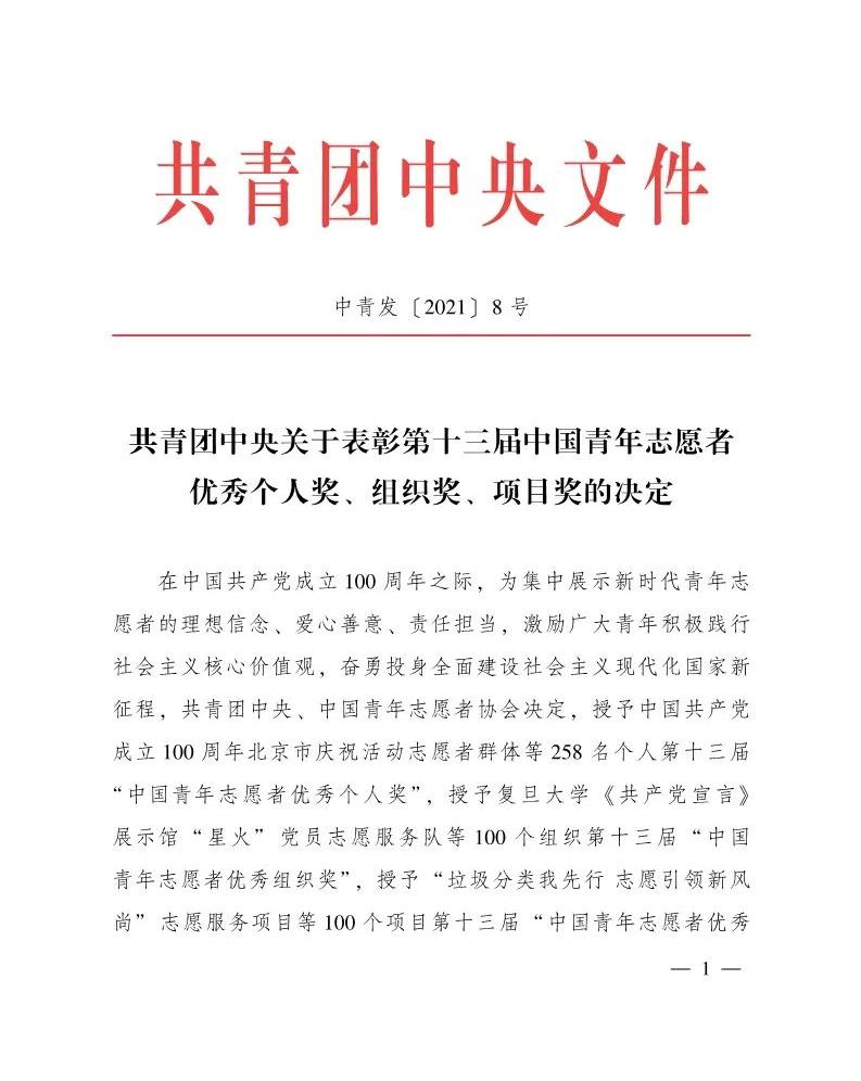 11月30日,共青团中央发布《关于第十三届中国青年志愿者优秀个人奖、组织奖、项目奖的决定》,8xbet体育登录青年志愿者协会获评第十三届“中国青年志愿者优秀组织奖”。该奖项是全国志愿服务类评选的最高荣誉,2021年全国共评选优秀组织奖100个,其中重庆市获奖3个,我校是唯一一个获奖高校。