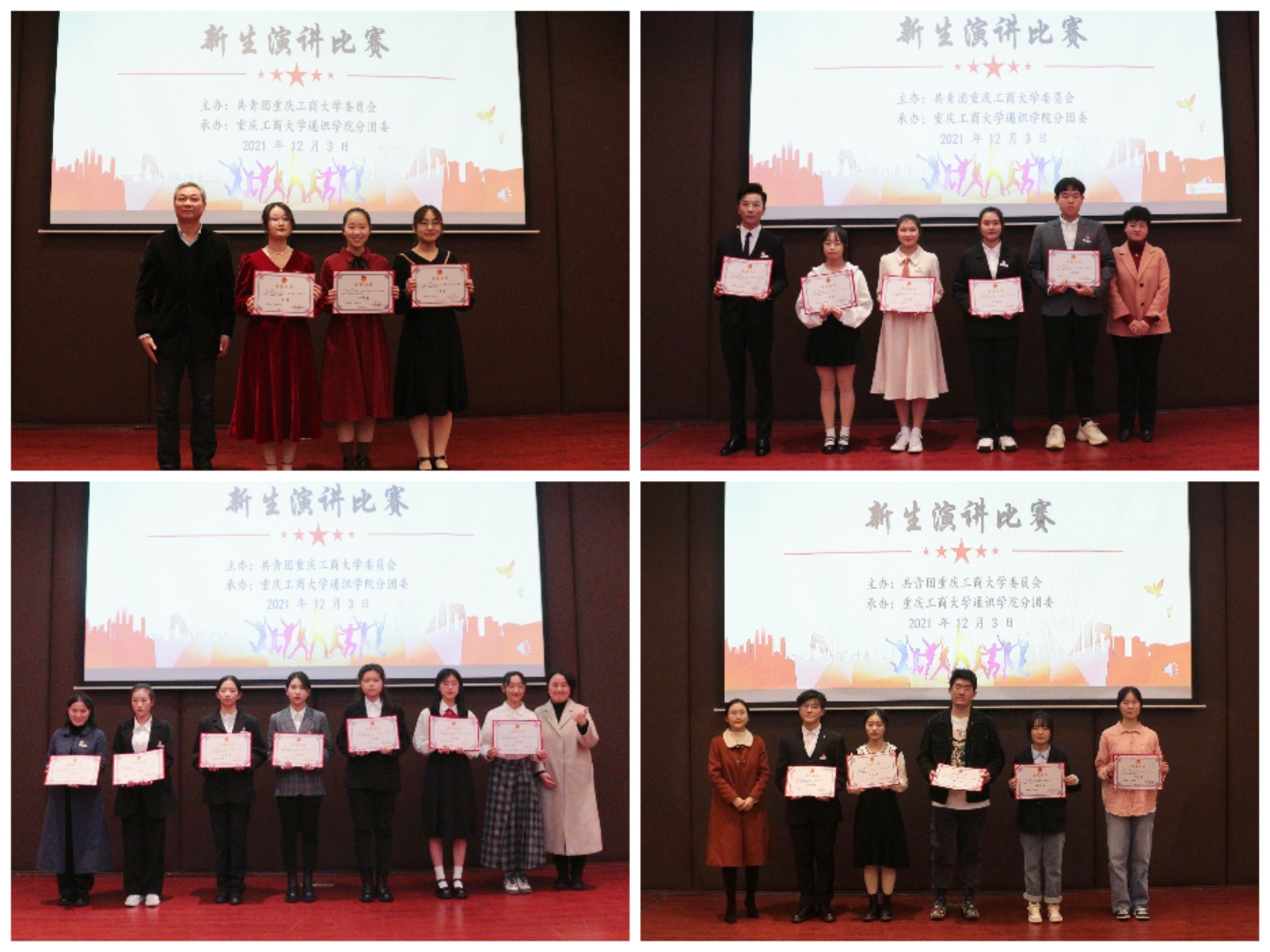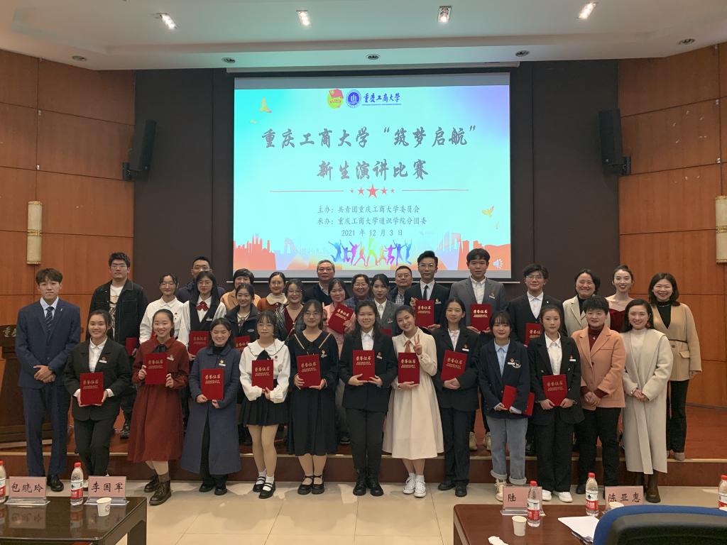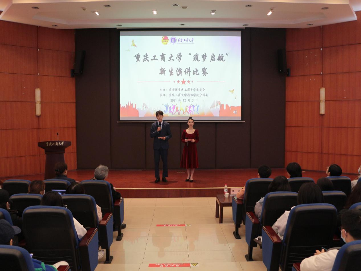 12月3日下午,由校团委主办、通识学院分团委承办的“筑梦启航”新生演讲比赛在江北校区宏智楼B509报告厅举行。比赛邀请党委宣传部副部长陆嘉、学工部副部长陈亚惠、校团委副书记胡婧婷、重庆财经学院团委老师江蕊弘、重庆移动电视频道主持人杨明威担任评委。副校长李国军、通识学院(江北校区管委会)班子成员,以及师生代表观看了比赛。
