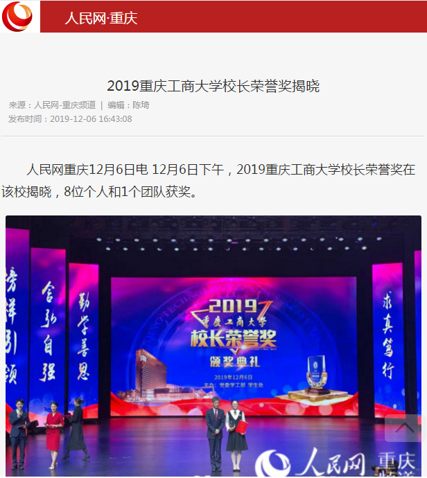 2014年学校设立8xbet体育登录“校长荣誉奖”,并确定其为校内学生最高荣誉奖项,其目的是树立新时代人才典范,引领广大工商学子,促进大学生德、智、体、美、劳全面发展,为社会培育优秀人才。自校长荣誉奖设立以来,我校已有29名学生个人、9个学生团队荣获此荣誉。今年学校通过全校发动、各学院积极推荐申报、工作组审核查验材料、遴选评委成员、审阅投票、考察谈话、答辩会、公示、校长办公会审定等程序,最终从20个申报者中评选出八个个人和一个团队获得2019年校长荣誉奖。