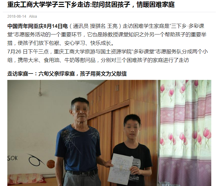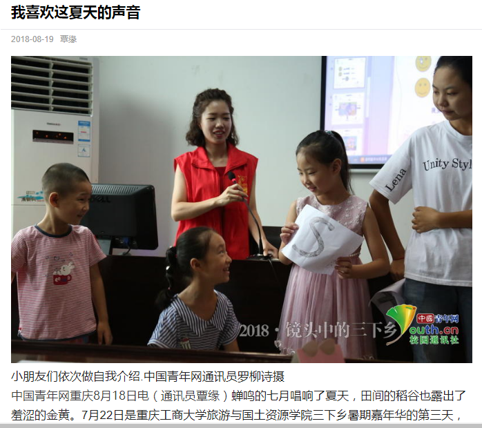 学院师生在九龙坡区陶家镇九龙村和文峰村围绕“青春大学习 奋斗新时代”主题开展的系列活动中志愿团队的突出表现受到了国家级和省市级多方媒体的广泛关注和报道,社会反响热烈。
