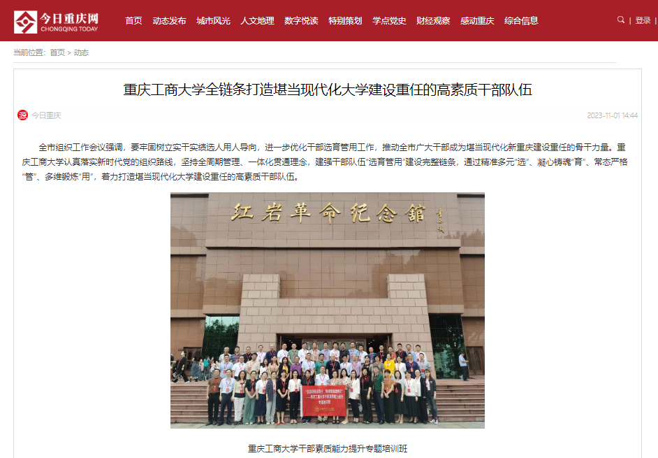 11月1日,今日重庆网以《8xbet体育登录全链条打造堪当现代化大学建设重任的高素质干部队伍》报道我校干部队伍建设工作的做法经验。