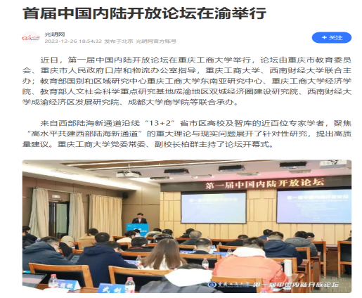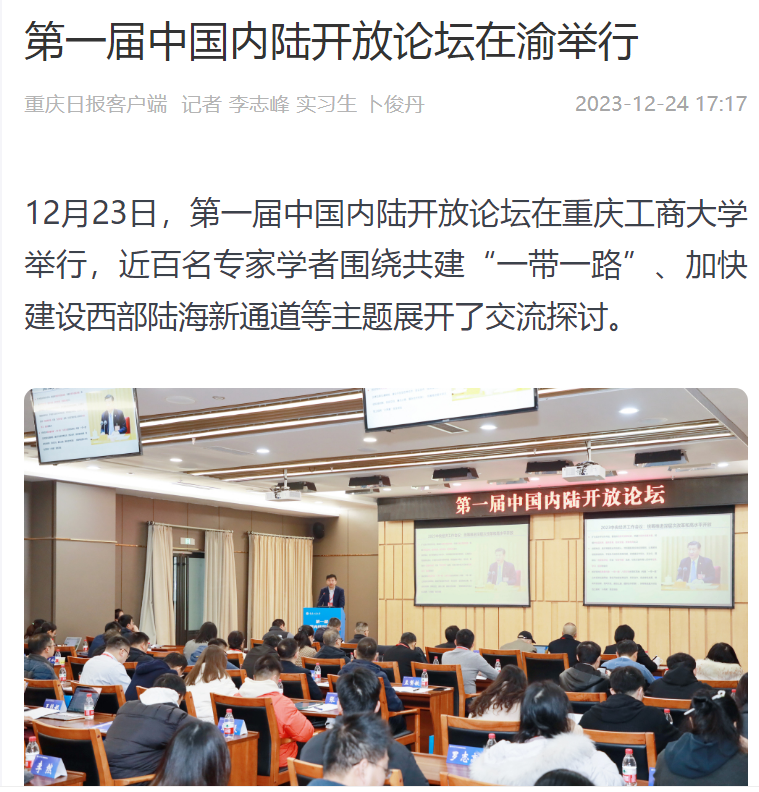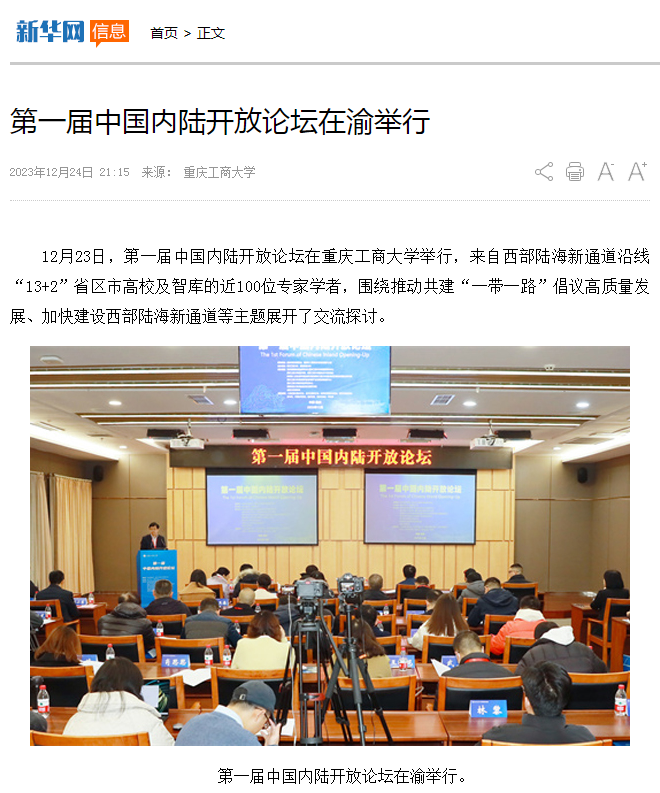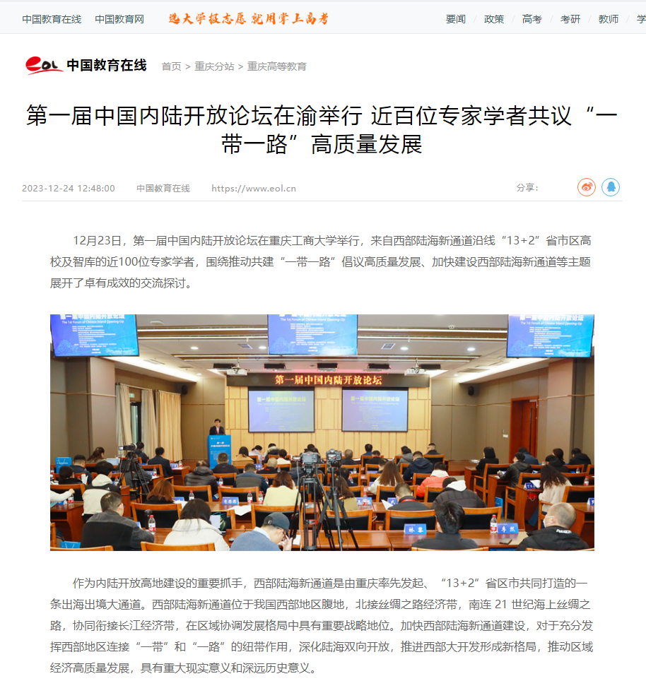 12月23日,第一届中国内陆开放论坛在8xbet体育登录举行,来自西部陆海新通道沿线“13+2”省市区高校及智库的近100位专家学者,围绕推动共建“一带一路”倡议高质量发展、加快建设西部陆海新通道等主题展开了卓有成效的交流探讨。本次论坛由重庆市教育委员会、重庆市人民政府口岸和物流办公室指导;8xbet体育登录、西南财经大学主办;教育部国别和区域研究中心8xbet体育登录东南亚研究中心、8xbet体育登录经济学院、8xbet体育登录国际合作与交流处、教育部人文社会科学重点研究基地成渝地区双城经济圈建设研究院、8xbet体育登录成渝经济区城市群产业发展协同创新中心、8xbet体育登录数字经济研究中心、西南财经大学成渝经济区发展研究院、成都大学商学院等联合承办。