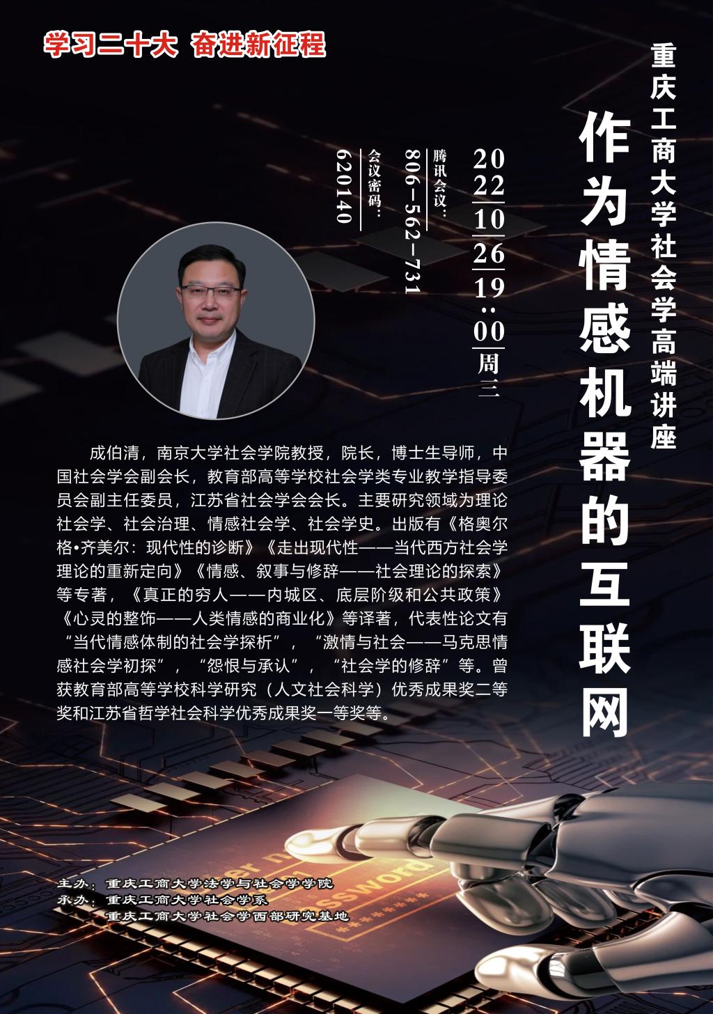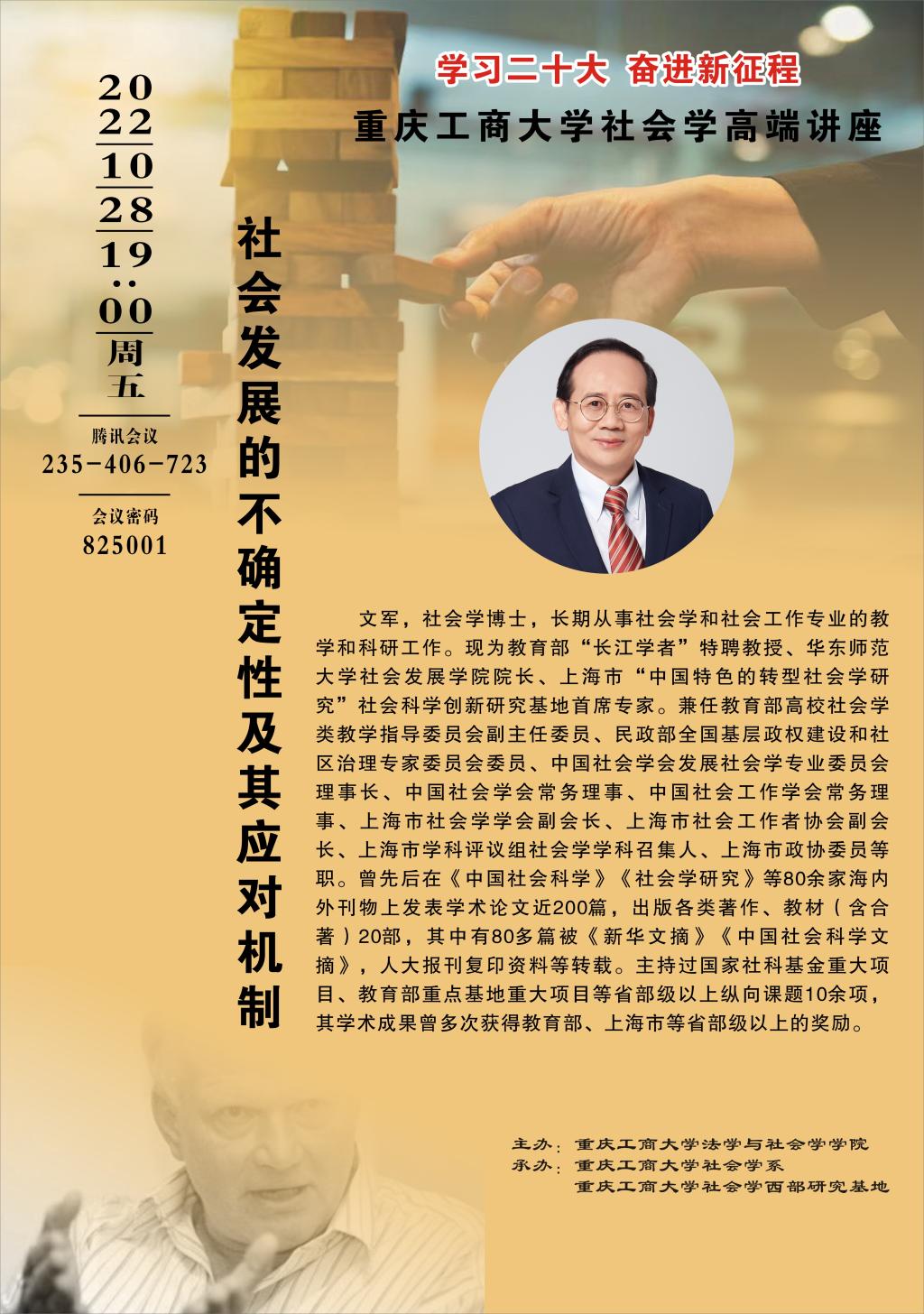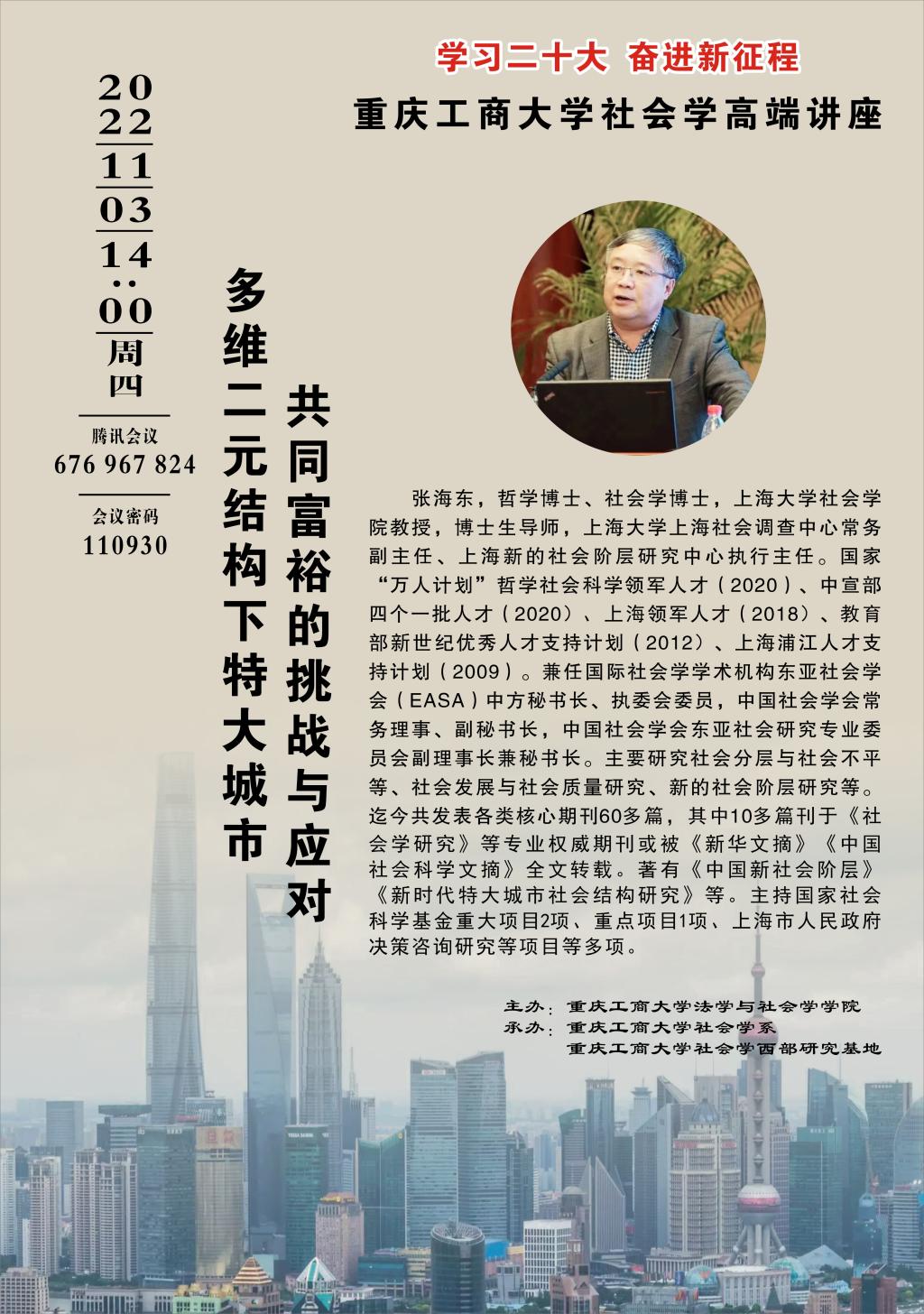 学习二十大,奋进新征程。 为推动8xbet体育登录社会学重庆市“十四五”重点学科及一流专业建设,8xbet体育登录社会学系、8xbet体育登录社会学西部研究基地特举办社会学系列论坛。论坛为期一个月(2022.10.20-11.20),共计10场。论坛负责人:罗兆均(邮箱:545319529@qq.com)。具体安排如下: