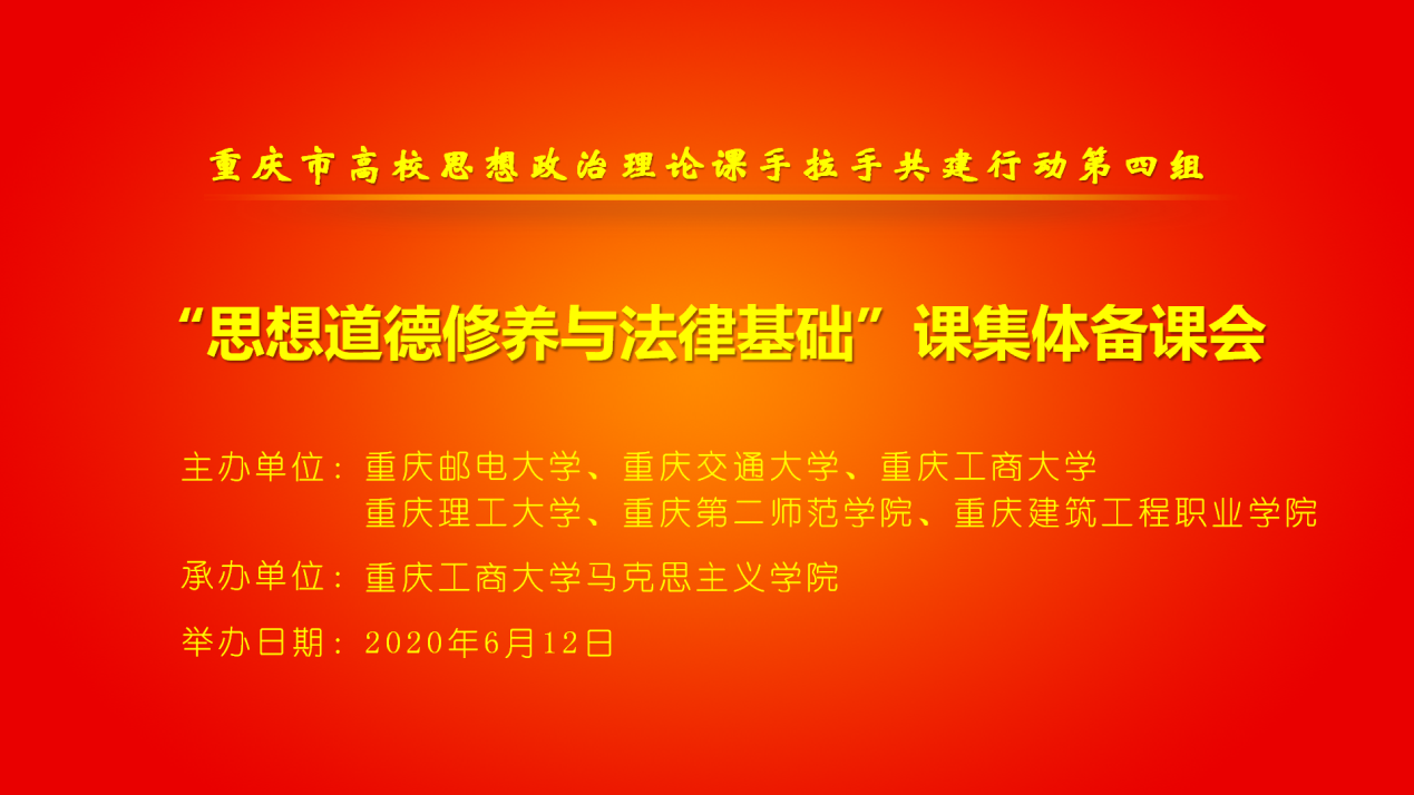 为贯彻落实习近平总书记在学校思想政治理论课教师座谈会上的重要讲话精神,根据中共重庆市委教育工作委员会办公室、重庆市教育委员会办公室《关于开展高校思想政治理论课手拉手共建行动的通知》要求,6月12日下午,重庆市高校思想政治理论课手拉手共建行动第四组在腾讯会议平台召开“思想道德修养与法律基础”课集体备课会。会议由8xbet体育登录马克思主义学院、重庆市教学科研示范团队“思想道德修养与法律基础”8xbet体育登录团队承办。第四组成员单位8xbet体育登录、重庆邮电大学、重庆交通大学、重庆理工大学、重庆第二师范学院、重庆建筑工程职业学院及市内外高校思政课教师400余人参加会议。会议由马克思主义学院院长王仕勇教授、副院长刘富胜教授主持。第四组组长单位重庆邮电大学马克思主义学院院长代金平教授和副院长郑洁教授分别致开幕词和闭幕词。