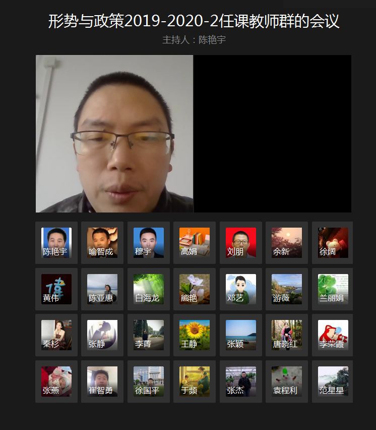 黄伟教授和陈艳宇老师分别围绕“坚决打赢新冠疫情防控人民战、总体战、阻击战”和“确保如期打赢脱贫攻坚战”进行专题示范授课。陈艳宇对所有教师进行了在线教学技能培训。参会老师围绕授课内容、在线教学平台、师生互动等问题进行了充分讨论。