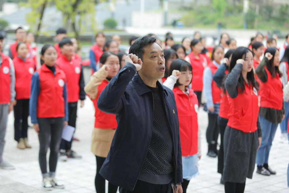 米密书记在外语学院党员服务站2018级新生进站仪式上讲话