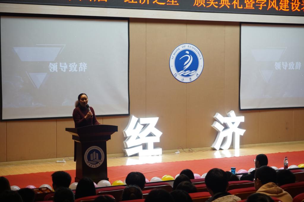 会议伊始,王小玲书记介绍了学院评奖和进行表彰的宗旨和意义,并对各获奖及被表彰的班级、个人表示祝贺。她希望经济学子奋勇争先,向先进看齐,向优秀挑战,保持积极向上的精神风貌,做德智体美劳全面发展的综合型人才。